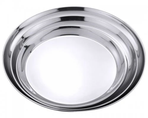 2x Serviertablett. rund aus Edelstahl. hochglänzend. mit gebördeltem Rand Durchmesser: 50 cm. Höhe: 2.2 cm