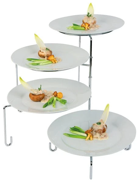 Metall hartverchromt, für 4 Teller (Ø 24-31 cm), platzsparend zusammendrehbar, bietet viele Möglichkeiten zur