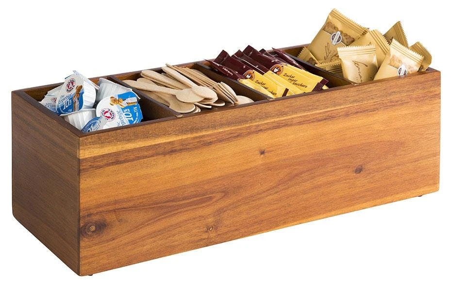 Diese Holzbox aus robustem Akazienholz zeichnet sich durch das zeitlose, moderne Design sowie die Multifunktionalität aus. Als Gewürz- und Essig- Ölaufbewahrung in Ihrer Küche, Aufbewahrung Ihrer Badutensilien sowie Gästehandtücher, oder für Ihr Buffet auf Ihrer Geburtstags- oder Hochzeitsfeier. Die Möglichkeiten sind vielfältig. Bewahren Sie für Ihre Flaschen und andere Barutensilien in der Box auf. Auch Gastgeschenke oder die allseits beliebten gemischten Tüten für Ihre Gäste finden hier Platz. Für reichlich Nachschub ist durch die Stapelbarkeit der Box gesorgt. Seien Sie kreativ und kreieren Sie eine Buffetlandschaft für Ihre Feier. Bei Verschmutzungen kann die Holzbox mit einem feuchten Tuch abgewischt werden (nicht spülmaschinengeeignet). Sie besteht aus dem robusten Akazienholz
