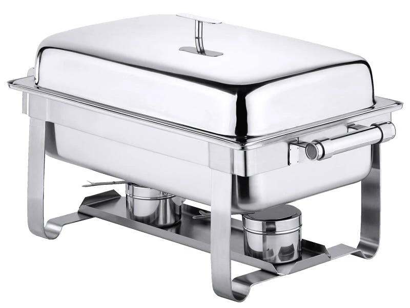 Chafing Dish GN 1/1 mit zwei Brennbehältern, aus Edelstahl 18/10, Rahmen aus Edelstahl 18/0, hochglänzend, standardmäßig mit GN 1/1-Einsatz 65 mm und zwei Brennbehältern ausgestattet, mit handlichen Rohrgriffen, schwere Qualität