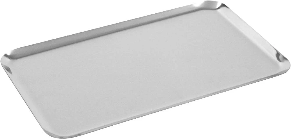 Hochglanzpolierte Serviertabletts in rechteckiger Form aus Edelstahl mit geradem Rand. ++ Höhe: 10mm ++