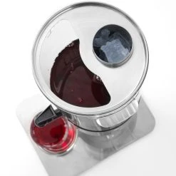 Mit Eiszylinder zum Abkühlen. Saftbehälter aus durchsichtigem Polykarbonat. Mit tropffreiem Ablasshahn.