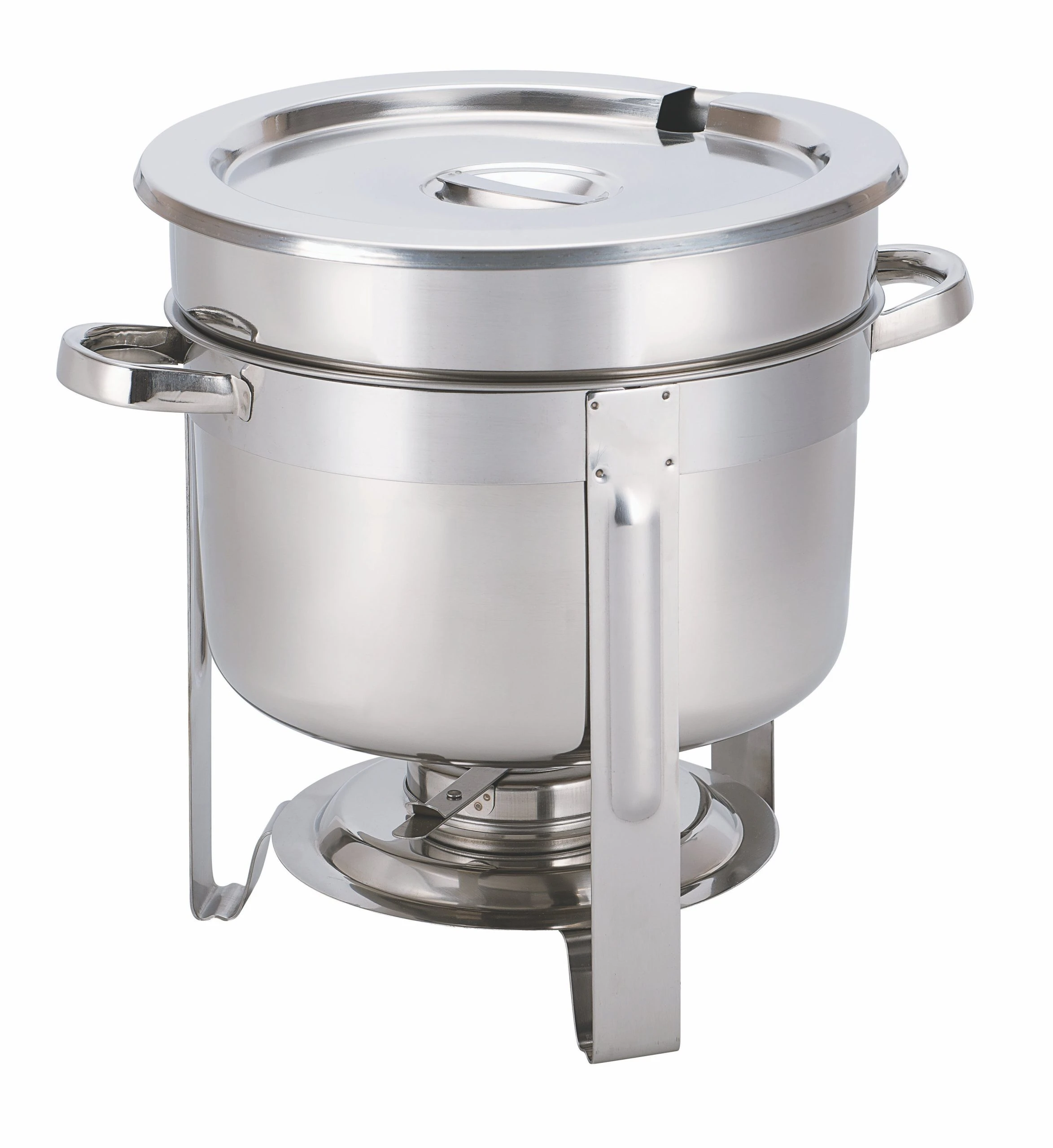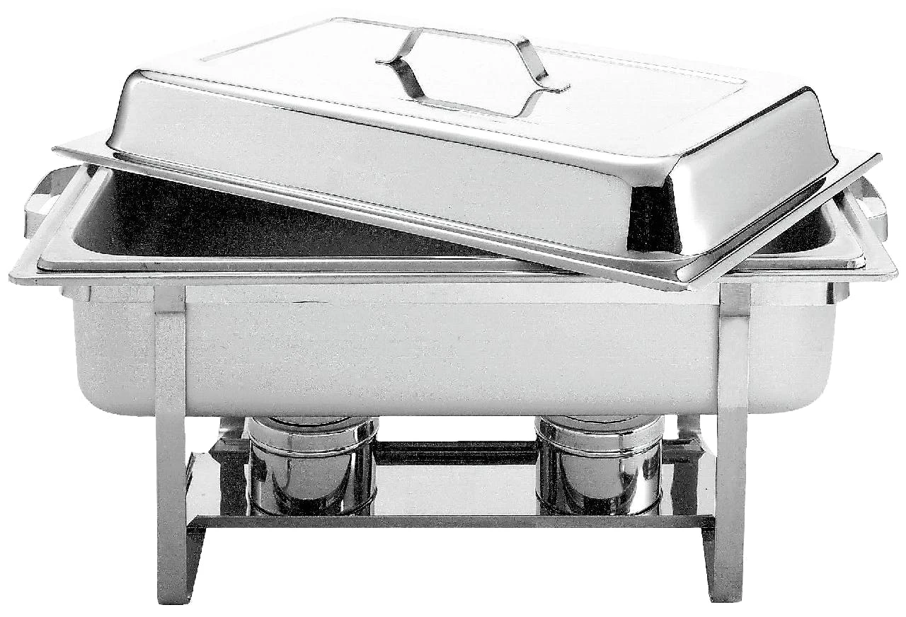 Der METRO Professional Chafing-Dish verfügt über einen abnehmbaren Deckel, eine Speisepfanne (GN 1/1, 9 l, 65 mm), einen Wasserbehälter und 2 Brennstoffhaltern. Das Produkt verfügt über ergonomische Griffe, ein robustes Gestell und eine Hochglanzoptik. Das Produkt lässt sich leicht stapeln.