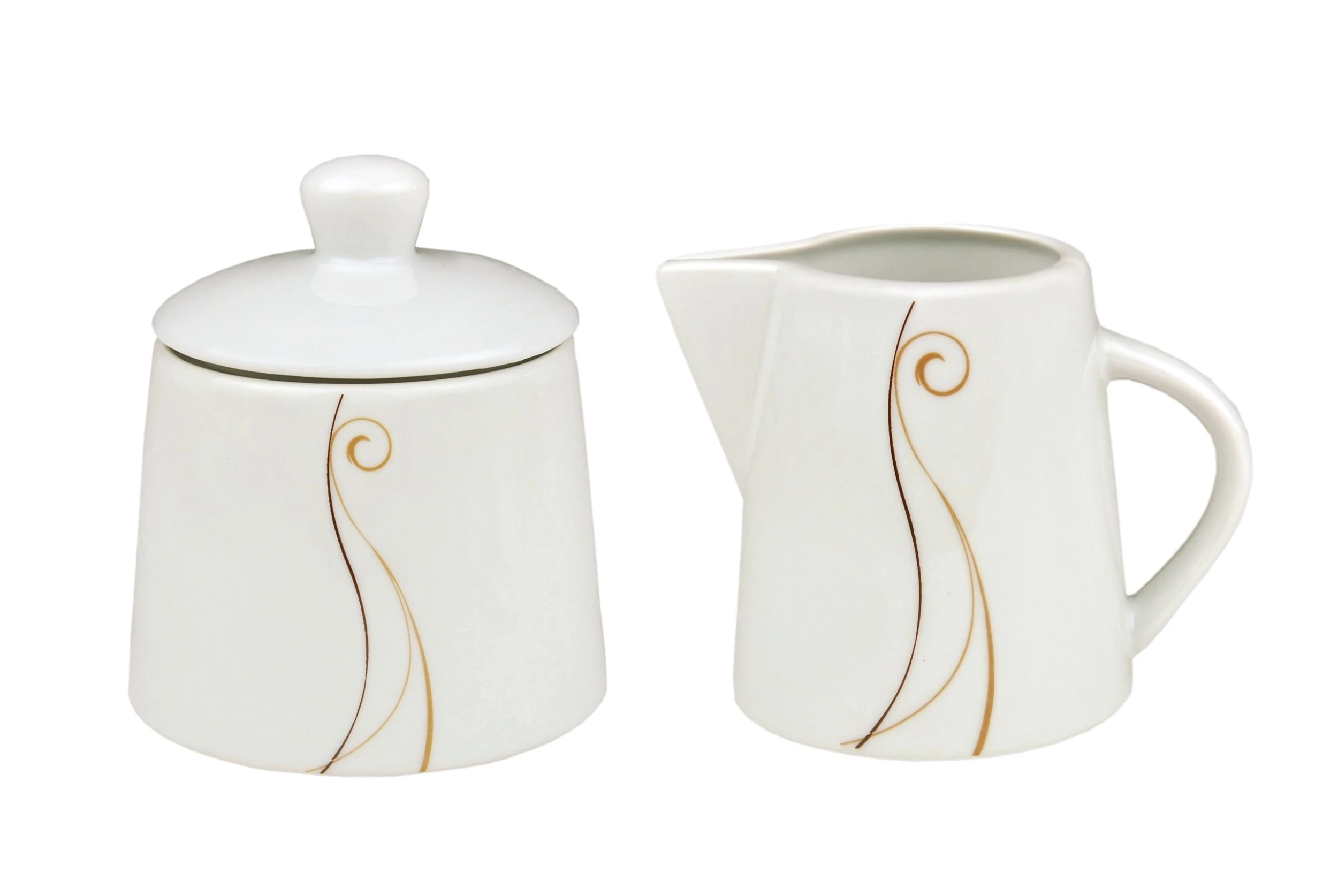 Van Well Porzellan Serie Caviano ZubehörDas Porzellan Kombiservice Caviano ist ein elegantes Geschirr mit dezentem Dekor.Die eckige Form und das lila / graue Dekor, verleihen den Zubehörteilen das gewisse `Etwas`.Diese Ergänzungen aus weißen Porzellan mit farbigem Dekor sind für den täglichen Gebrauch, sowie für die festlich gedeckte Tafel bestens geeignet.Spülmaschinen- und Mikrowellengeeignet sind die Eigenschaften, die das Service zudem absolut funktional machen.Sie können das Geschirr ganz nach Lust und Laune und dem Anlass entsprechend dekorieren, ob Frühstück, Brunch, Kaffee oder das perfekte Dinner, das Service wird garantiert ein Hingucker.Artikel enthält folgende Ergänzungsteile:1x Milchkännchen Caviano 22cl1x Zuckerdose Caviano 26cl