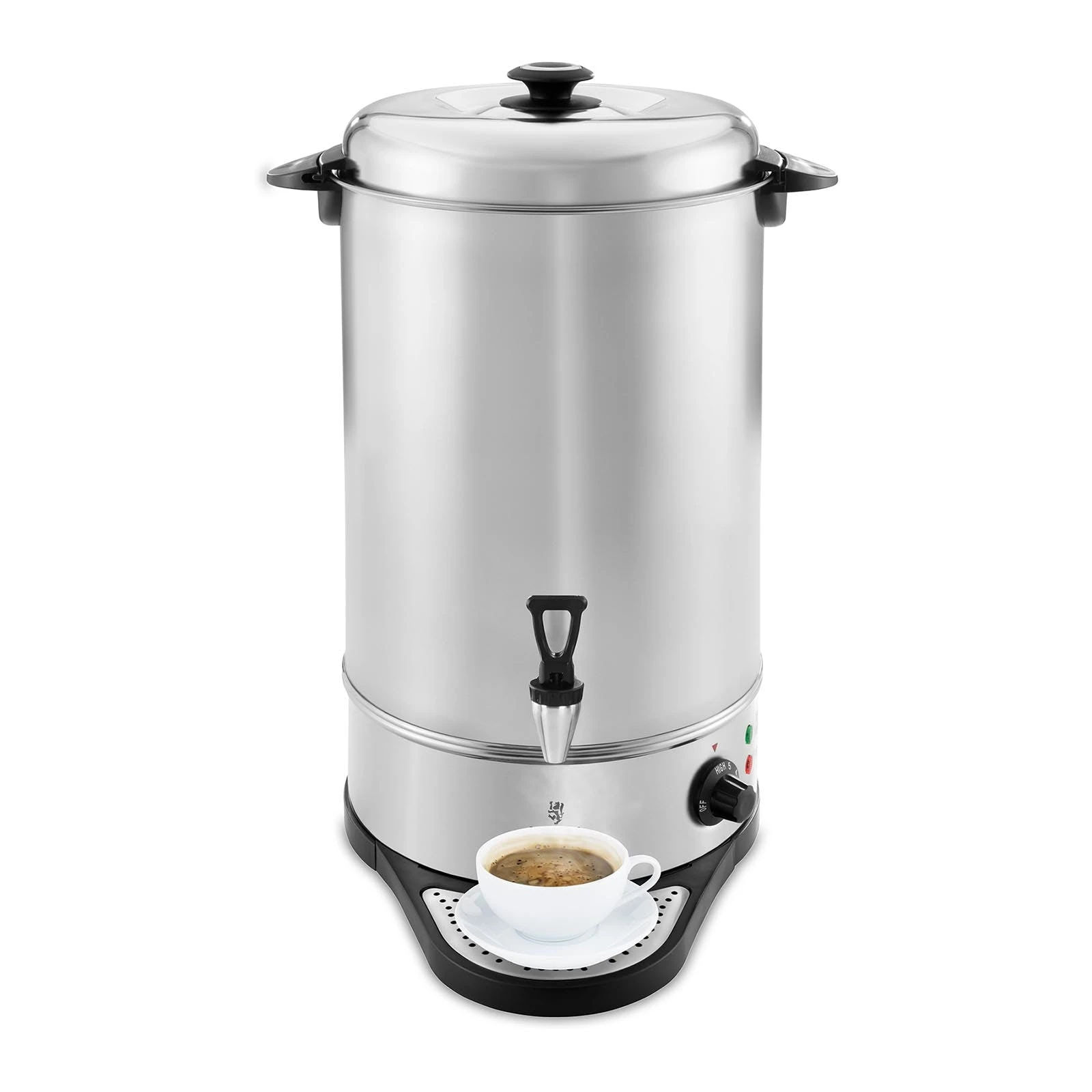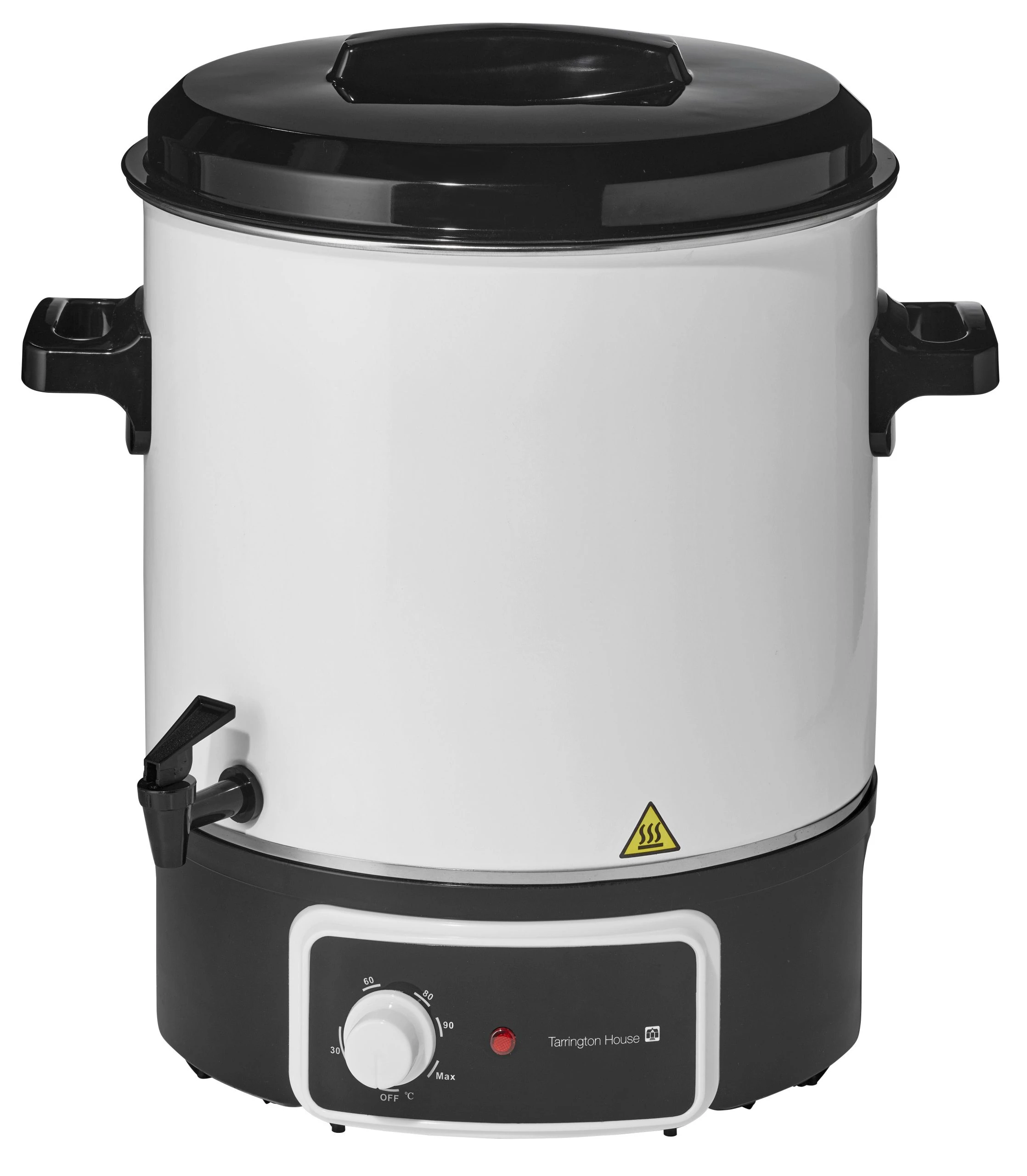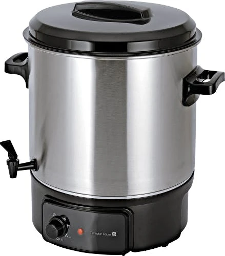 Der Tarrington House Einkocher PB27 (1800 W) mit einer Kapazität von 20 Liter und kann zum Kochen, Aufwärmen, Warmhalten und zum Zubereiten von heißen Getränken verwendet werden. Das Produkt punktet mit einem einstellbaren Temperaturbereich von 30 bis 100°C, einem Gehäuse aus Emaille mit Plastikgriffen und -deckel, einem Überhitzungsschutz und einer Kontroll-Leuchte.